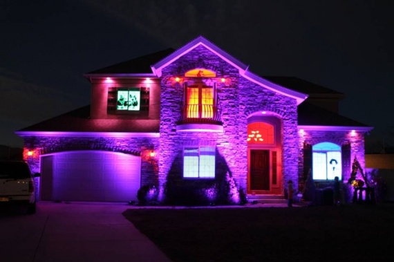 Варианты световых решений для украшения фасада дома